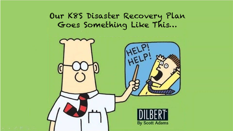 Old picture created by Scott Adams where he make fun of a Companies Disaster Recovery Strategy